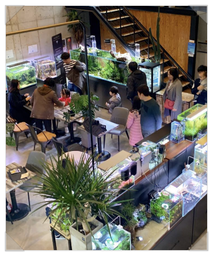 멋진 레이아웃의 비결인 천안팀아쿠아수초 코너에서는 다양한 종류의 건강한 수초를 볼 수 있었어요. 화려한 열대어와 유목은 물론, 다양한 레이아웃 수조와 세트까지 직접 보며 고를 수 있어 어항 꾸미기를 생각하고 있다면 좋은 아이디어를 얻기 충분해요.